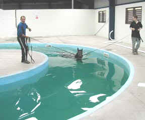swimming, the horses are dried off under the heat/lights in the solarium.